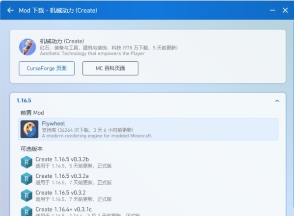 PCL2内置从CurseForge下载mod的功能,可以免去从网页下载的种种麻烦。