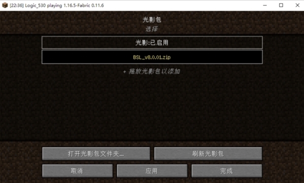 我们点击要使用的光影包,然后光影就会启用