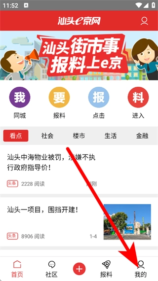 1、打开汕头e京网的页面后,点击底部的“我的”选项,即可进入登录页面。