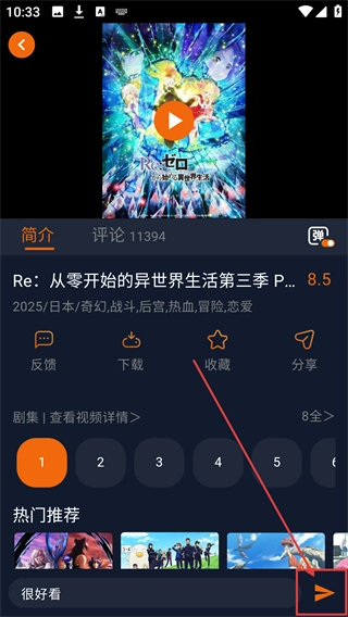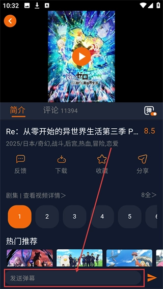2、进入动漫详情页,在发送弹幕框输入想说的话,可参与互动啦。
