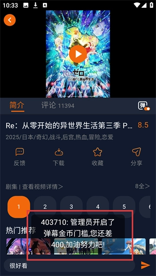 4、发送弹幕后,若收到金币门槛提示,可通过积累金币来满足发送条件哦。