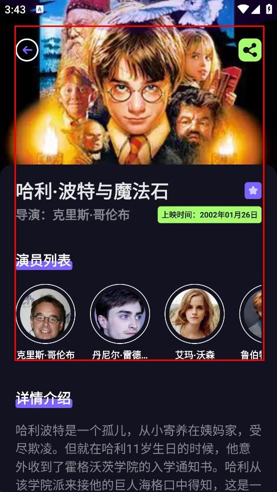 4、点击影视后,进入影视详情界面,可查看影视的导演、上映时间、演员列表、详情介绍等内容,尽情了解影视信息。