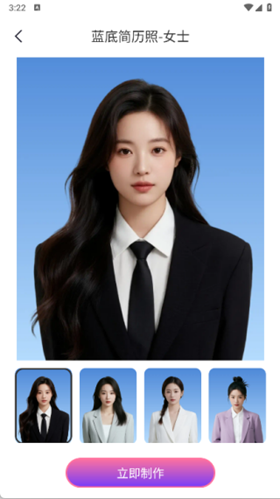 2、以蓝底为例,选择后在下方点击立即制作就可跟随指示完成证件照的制作。