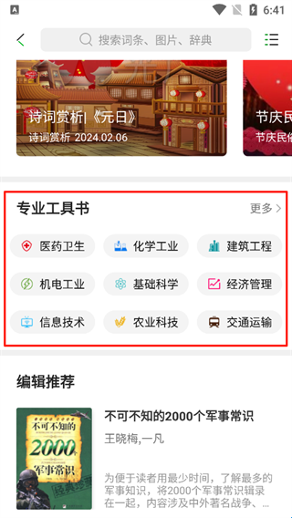 知网阅读,内置上万册专业权威的工具书,涵盖字典、辞典、图谱、手册等1.2万余册,2000万词条库在手,快速获取精准释义。此刻,您就是百科专家!