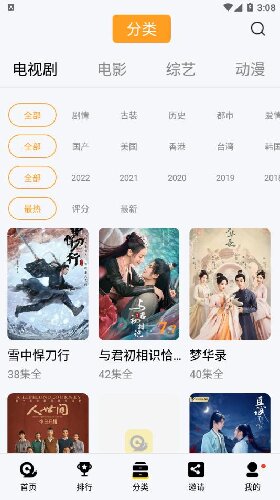2.所有的影视作品按照类型进行了详细分类,大类别下还有小类别,用户查找起来相当的方便。