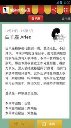 闹闹的女巫店安卓版是一款功能丰富的鸡算命软件,这款软件给用户提供了最为精准的星座运势查询服务,十二星座一年,一个月,一周,一天的运势,全都可以在这里查询,如此,还提供了星座配对,财务管理,心理测试等功能,我只要按照要求填写自己的生辰八字,平台就可以精准的为你测算出你的运势,不用再花钱去外面找人算命。
