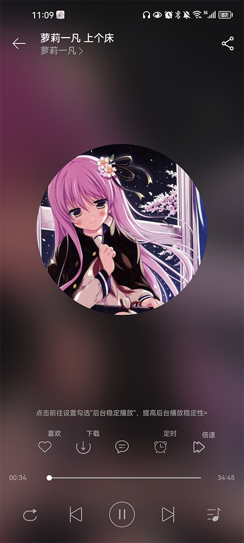 2、进入播放界面,你可以在这里进行线上播放,点击下载既可下载音频。