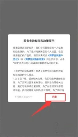 首先,当弹出服务条款与隐私政策的提示窗口时,点击“同意”按钮,就能进入应用。