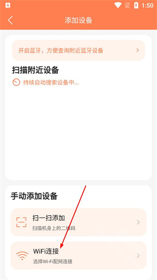 2、进入添加设备页面后,选择WiFi连接方式,仔细查看设备连接的相关要求,并确认设备电源已成功接通。