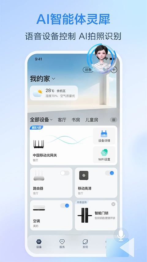 和家亲在软件是可以帮助进行网络管理的平台,可借助该软件来帮助家庭网络通信,让日常家居生活质量得以更上一层,支持远程管理等人性化操作,是中国移动在数字家庭领域的旗舰产品,探索开发智能数字家庭统一门户,让用户享受美好的智能生活体验。随时看都可一键随时看里面的 生活助手,可一键就可看最新的商城好物,设备专家在里面一键就可找到家人照片,简单进行每一秒的生活。