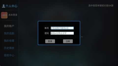 2.进入个人中心的登录界面,输入账号和密码,点击注册即可