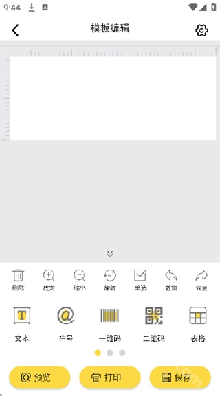 编辑元素界面可对文本、一维码、二维码、表格、线条、边框、符号、日期流水号等元素进行支持。