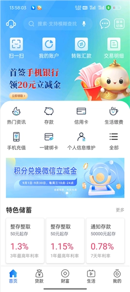 无论是账户查询、转账汇款,还是最新活动资讯,首页都能第一时间呈现,助力用户高效操作。