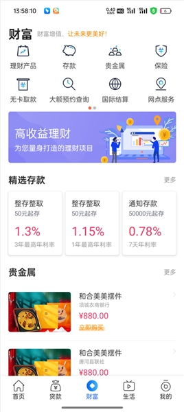 包含定期理财、基金、保险等各类产品,还提供风险评估工具与收益对比功能,助力用户科学管理资产,合理规划财富增长。