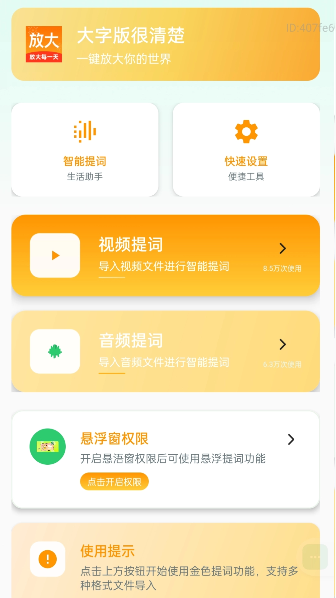 “放大每一天”是一款主打智能提词与高清放大功能的手机应用。在提词方面,它支持导入音视频自动生成稿件,结合悬浮窗展示与个性化设置,能轻松解决拍摄时的忘词困扰;在放大功能上,通过指尖放大镜可清晰呈现文本、物体细节,满足不同用户的查看需求。此外,软件会自动保存提词记录,帮助用户形成专属知识库,还配备了详细的使用指南,让操作更加便捷。