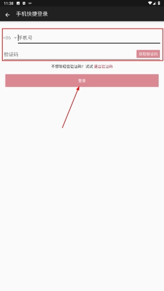 4、若选择手机快捷登录方式,需先填写手机号并获取验证码,输入验证码后点击【登录】按钮,即可完成验证流程。