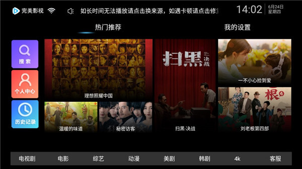 1、首先在本站下载完美影视软件,安装之后运行进入首页,首页提供电视剧、电影、综艺、动漫等不同类型的资源