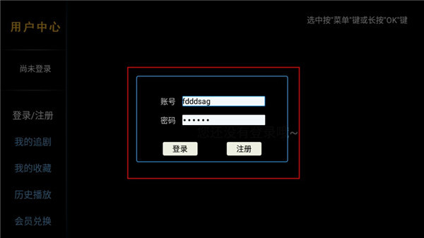 2、点击个人中心,输入账号和密码(要超过六位数),点击注册