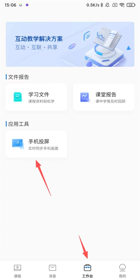 1、打开希沃品课,登录后点击【工作台】-【手机投屏】;
