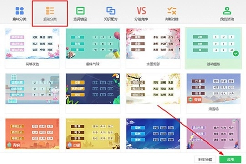 2、弹出课堂活动节目,在超级分类中选择一个【基础模板】,点击下方的【应用】选项,如下图所示: