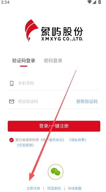 1、本网站软件,点击左下方的立即注册。