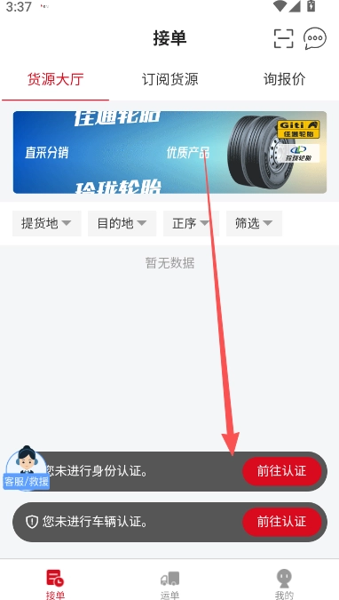 1、象屿智运接单需要先进行身份的认证。