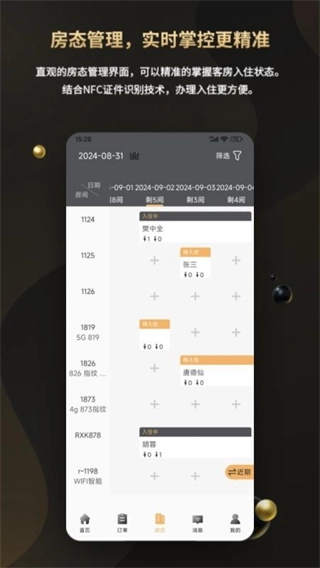 整合线上线下全部订单,直观呈现入住时间、支付状态等具体信息,具备订单跟踪与核销功能,支持一键发送入住提醒,实现从预订到退房的全流程闭环管理,有效降低人工沟通成本。