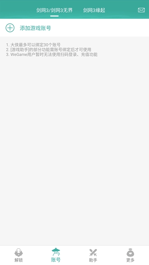 A:支持绑定《剑网3》重制版与《剑网3缘起》的游戏账号,这两款游戏各自最多可添加15个账号。