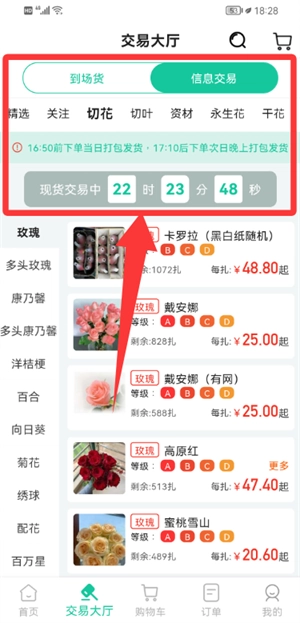 2、高效透明的交易机制:每日在固定时间启动拍卖模式,让供需双方能够迅速匹配到合适的花材资源。