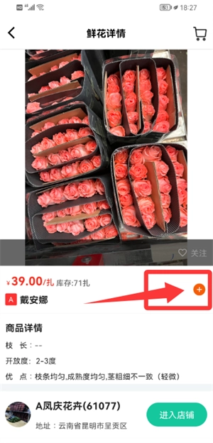 3、确认鲜花的规格、品质等信息准确无误后,点击右侧的加号按钮,把它添加到购物车中准备购买。