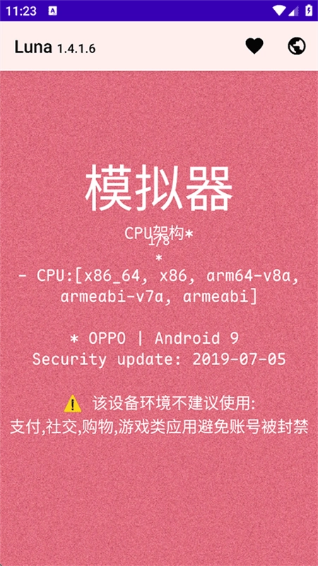 在手机上启动Luna环境检测工具,随后进入该软件的主界面。