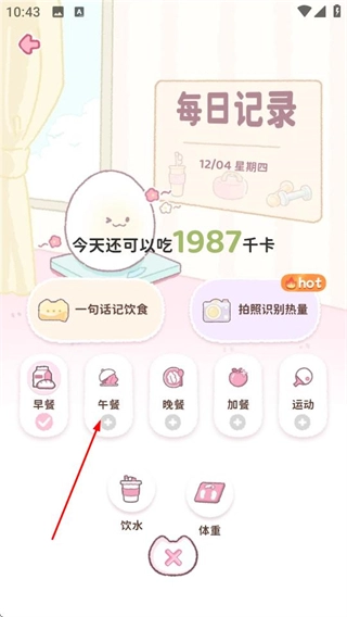在每日记录页面,点击午餐选项,进入添加午餐页面。