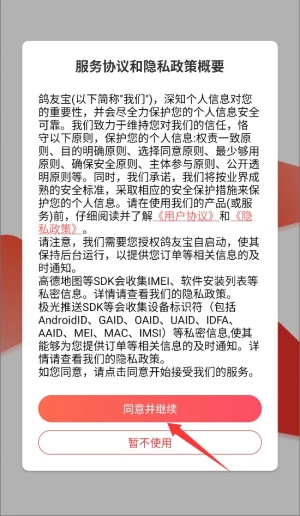 1、首次启动应用时,系统会显示用户协议和隐私政策,阅读后点击同意按钮进入主界面。