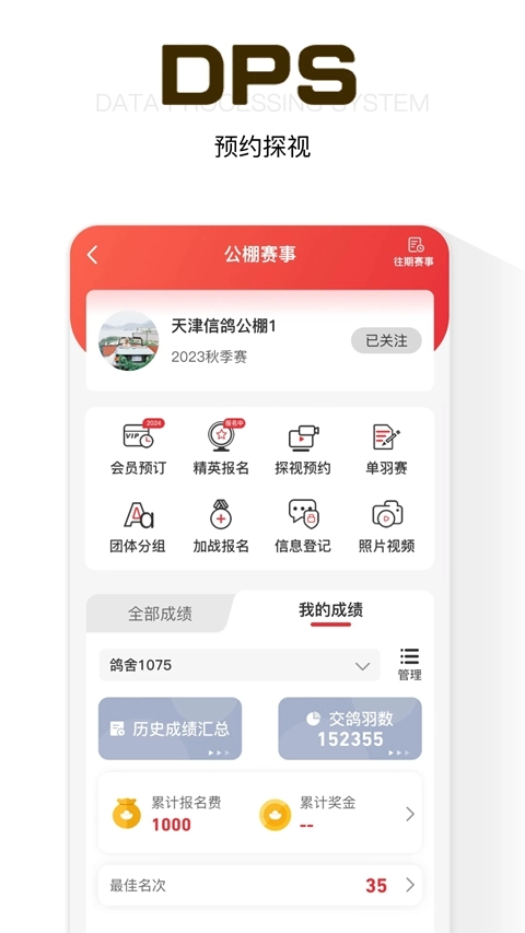 DPS鸽友宝App赛鸽爱好者的智能管理助手,精准追踪比赛、实时查看鸽子状态,告别繁琐记录,让养鸽工作高效有序,告别混乱与失误!