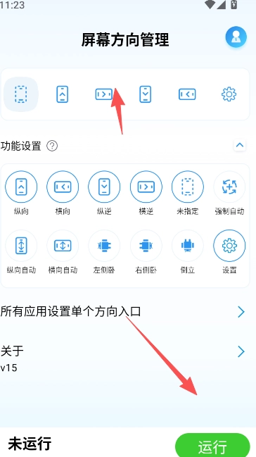 1、在屏幕方向管理首页,选择你要的屏幕显示方式点击运行。