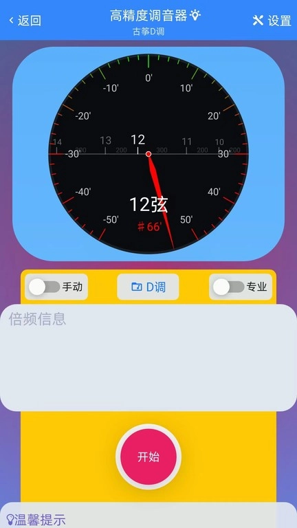 在调音器界面中,点击“开始”按钮就能启动自动识别调音功能。首次使用该功能时,系统会提示您授予录音权限。