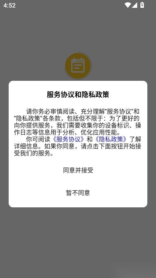 首先打开软件,仔细阅读协议与隐私政策内容后,点击“同意并接受”按钮即可进入。