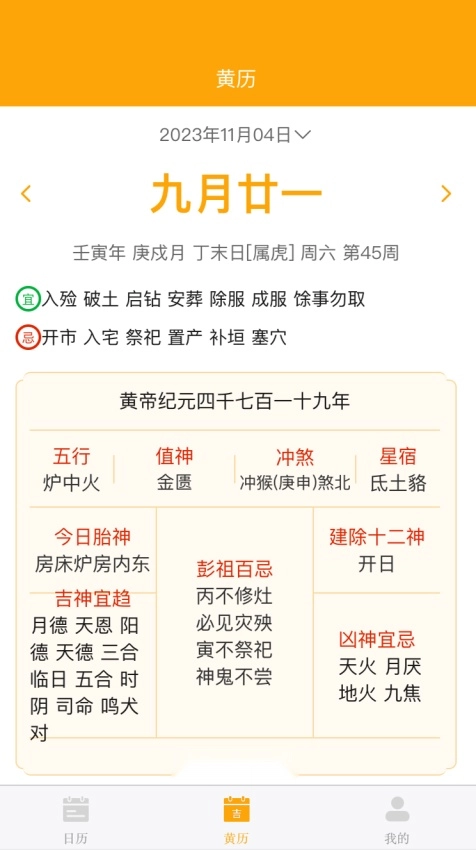 在软件首页界面找到底部菜单栏的“黄历”功能按钮,点击进入。