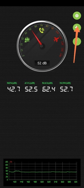 进入到我们的噪音分贝仪,可以看见我们的噪音分贝仪正在实时监测中,这个时候我们点击右上角的扳手图标。