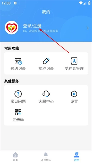 在首都疫苗服务的首页,点击底部的“我的”,即可进入个人页面。