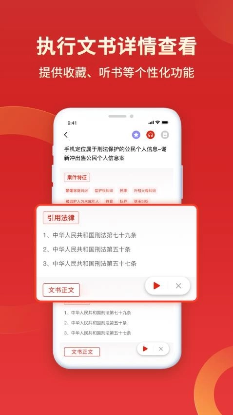 用户也能借助听书功能播放执行文书,随时听取案例的详细内容。