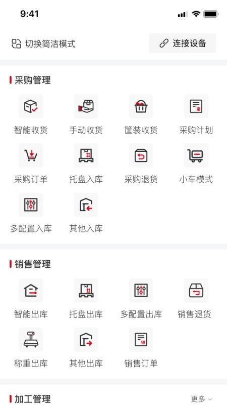 软件提供线上一站式供应链服务,助力用户便捷完成收货入库与实时加工转化。