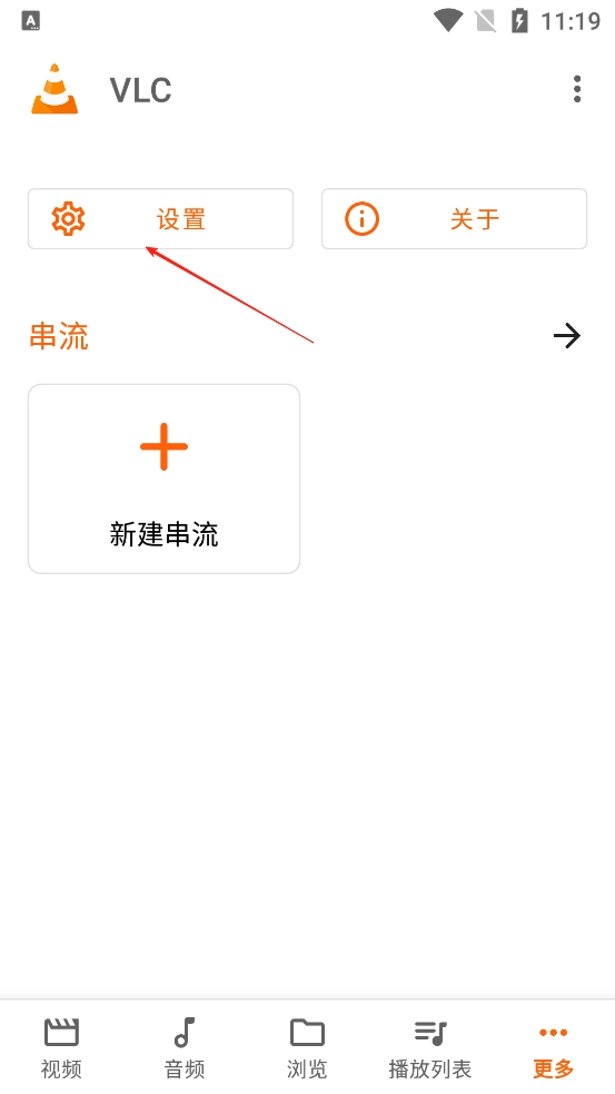 打开VLC播放器后,找到左下角的“更多”按钮并点击,接着选择“新建串流”选项。