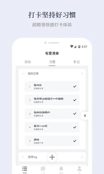 个性化支持配置:习惯清单的天数统计呈现为“已连续N天”;修正若干已知问题。