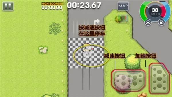 到达指定位置时同样需要按下减速按钮,另外左边的两个按键能够操控出租车的方向。