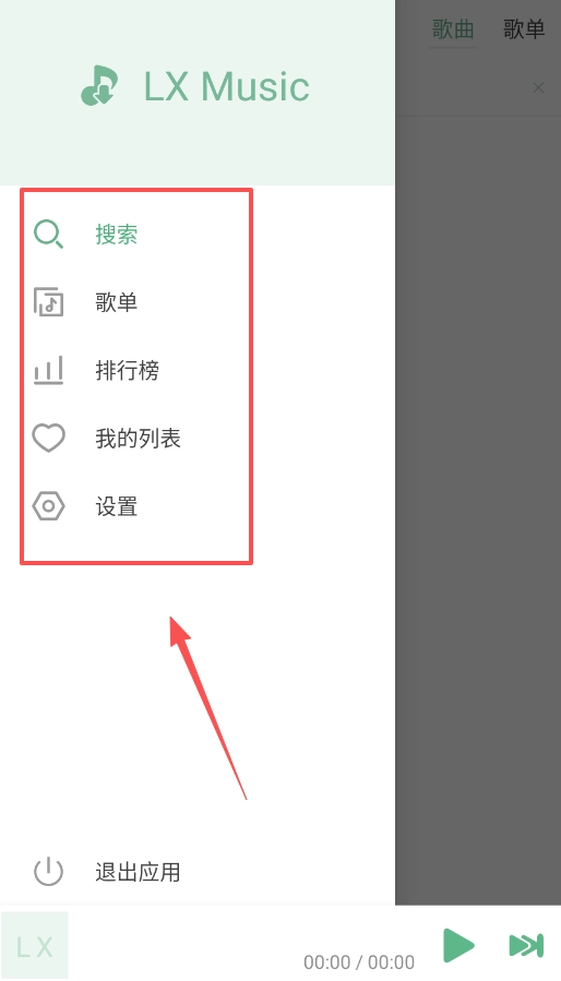 软件的基础导航栏位于左侧区域,你能够随时在搜索、歌单、排行榜以及我的列表这些功能板块之间进行切换。
