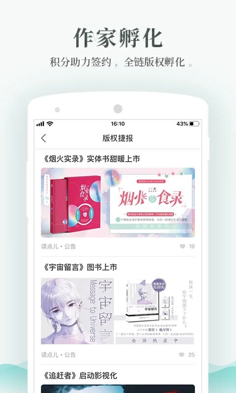 所有网友都能轻松又快速地参与进来,为自己钟爱的小说点赞,关注心仪的作家,分享自己的见解。