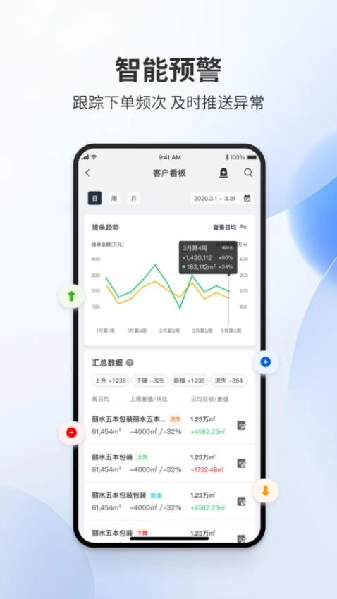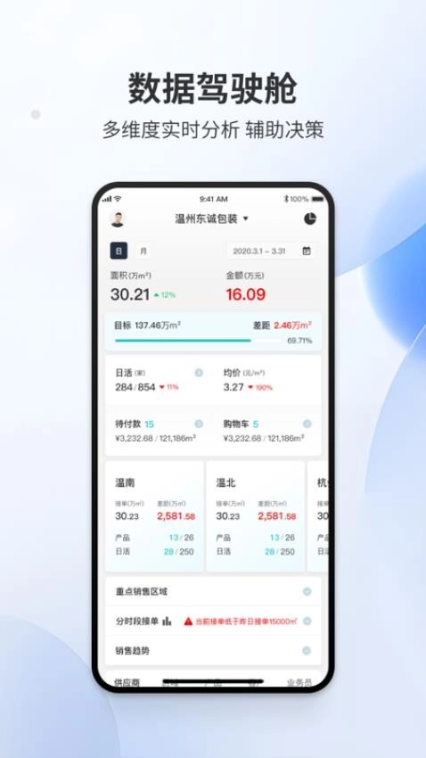 易单来是一款聚焦纸质包装行业的订单管理与辅助工具,能在线完成客户全生命周期管理。应用内呈现客户全景画像数据,用户可在线查看客户数据及基础详情,进而实现智能拜访、一键跟进客户,实时推动客户转化,轻松维护客户信息。平台还提供数字化管理工具,支持在线管理营销活动,便于开展多维度数据分析,助力用户更好地统计数据、实时跟进订单。此外,易单来具备客户订单智能预订功能,可及时接收异常提醒,有需求的用户不妨来本站体验使用!