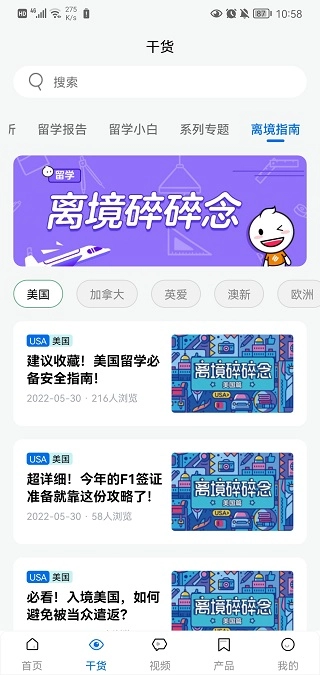 1、在平台就能快速的开始查看各种留学资料内容了;