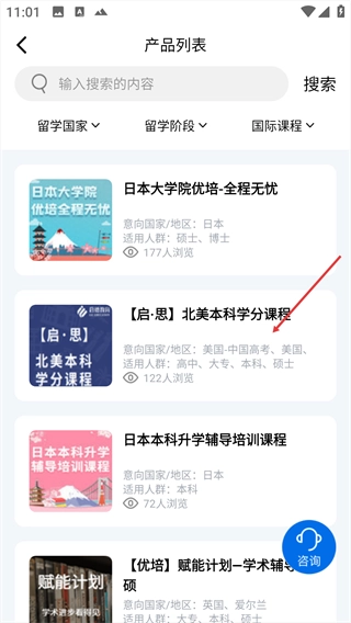 3、选择目标课程,点击该课程条目,进入产品详情页面。